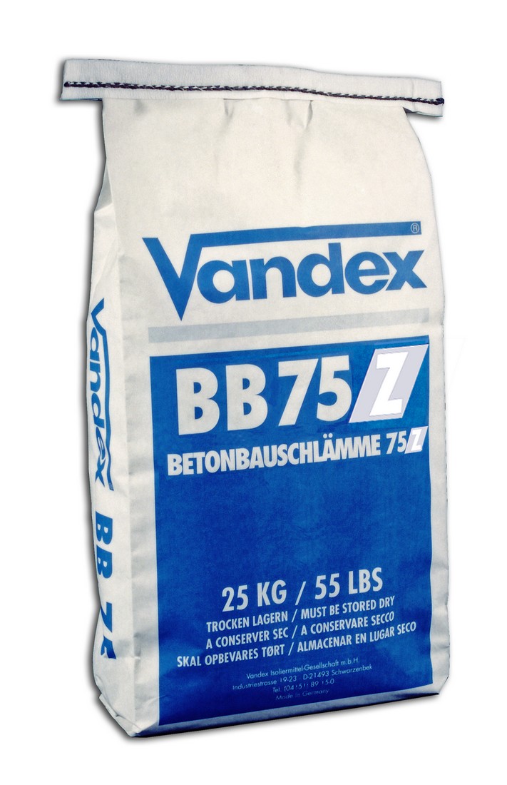 Το VANDEX BB 75 Z είναι τσιμεντοειδές επαλειπτικό στεγανωτικό επίχρισμα επιφανειών σκυροδέματος, κατάλληλο για χρήση σε επαφή με λύματα και για προστασία από υπόγεια νερά που περιέχουν ιόντα θείου. Έχει αντοχή σε αρνητική πίεση 7 bar. Είναι μίγμα τσιμέντου, χαλαζιακής άμμου με αυστηρά καθορισμένη κοκομμετρική διαβάθμιση, και ειδικών ανόργανων χημικών ενώσεων.