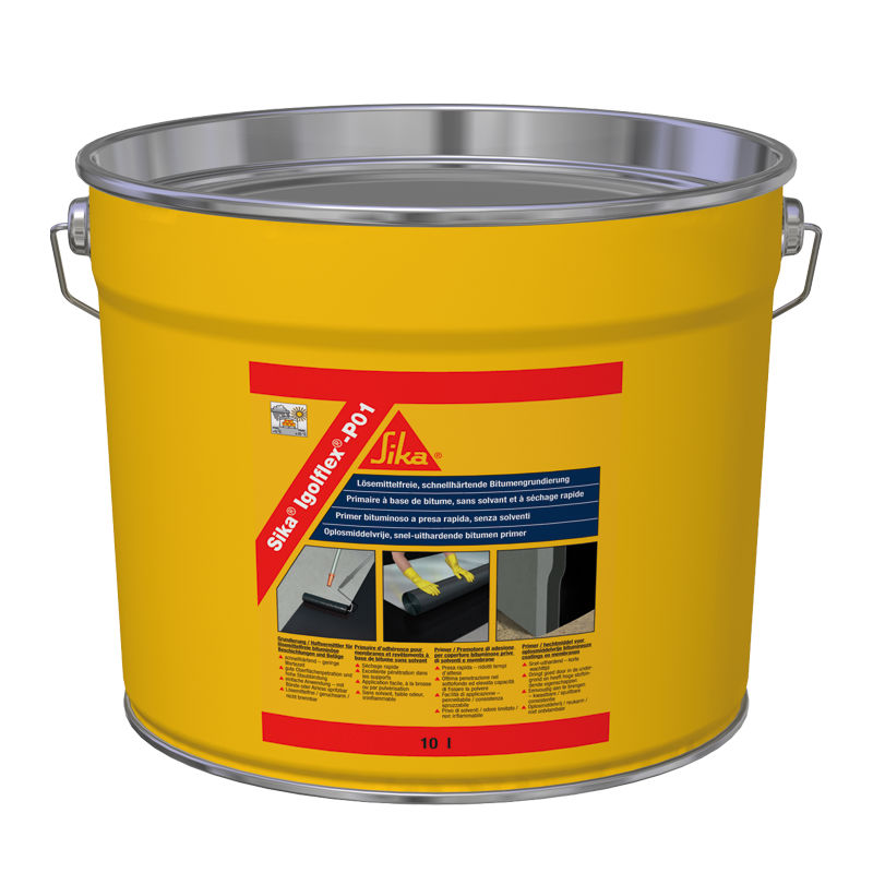 Το Sika Igolflex-P01S είναι ένα ενός συστατικού, ασφαλτικό βερνίκι & αστάρι για ασφαλτικές μεμβράνες και για προστασία κατασκευών από μέταλλο και σκυρόδεμα.