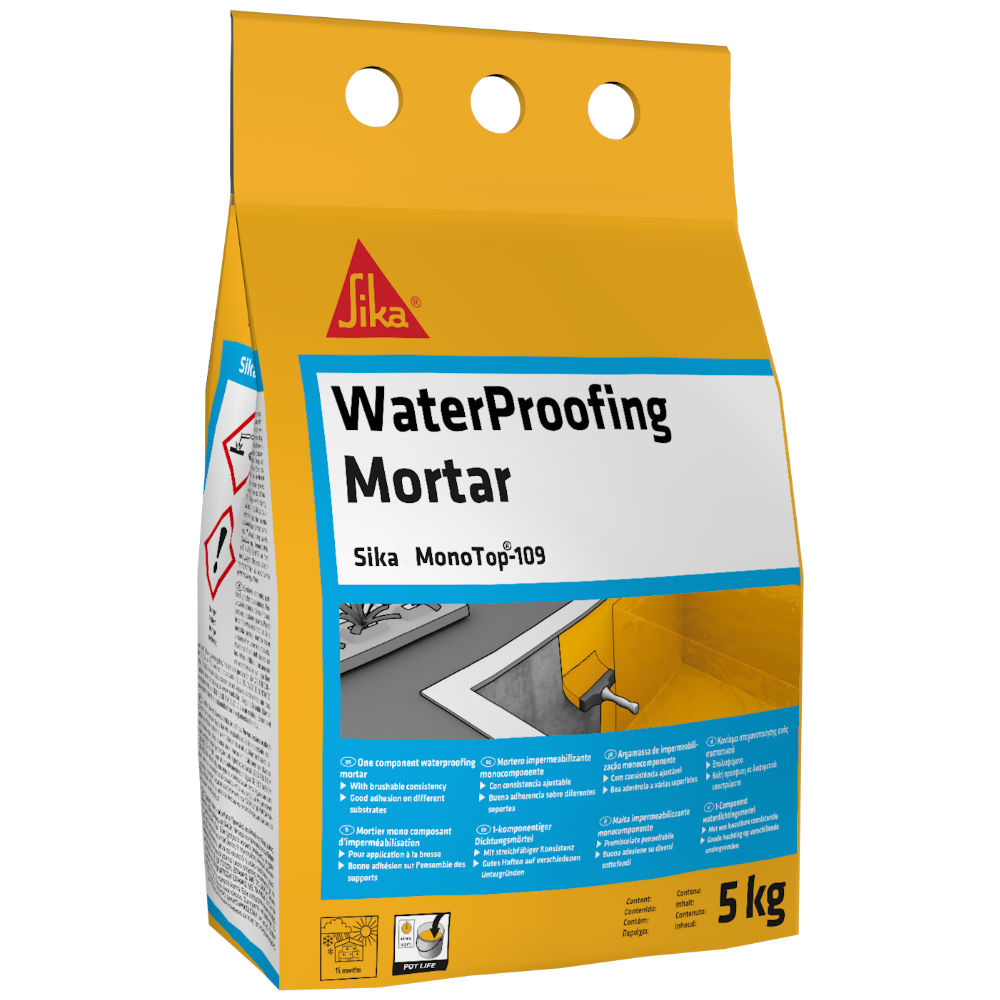 Το Sika MonoTop®-109 WaterProofing είναι ενός συστατικού, έτοιμο προς χρήση κονίαμα στεγανοποίησης, κατάλληλα διαμορφωμένης συνεκτικότητας για εφαρμογή με βούρτσα.