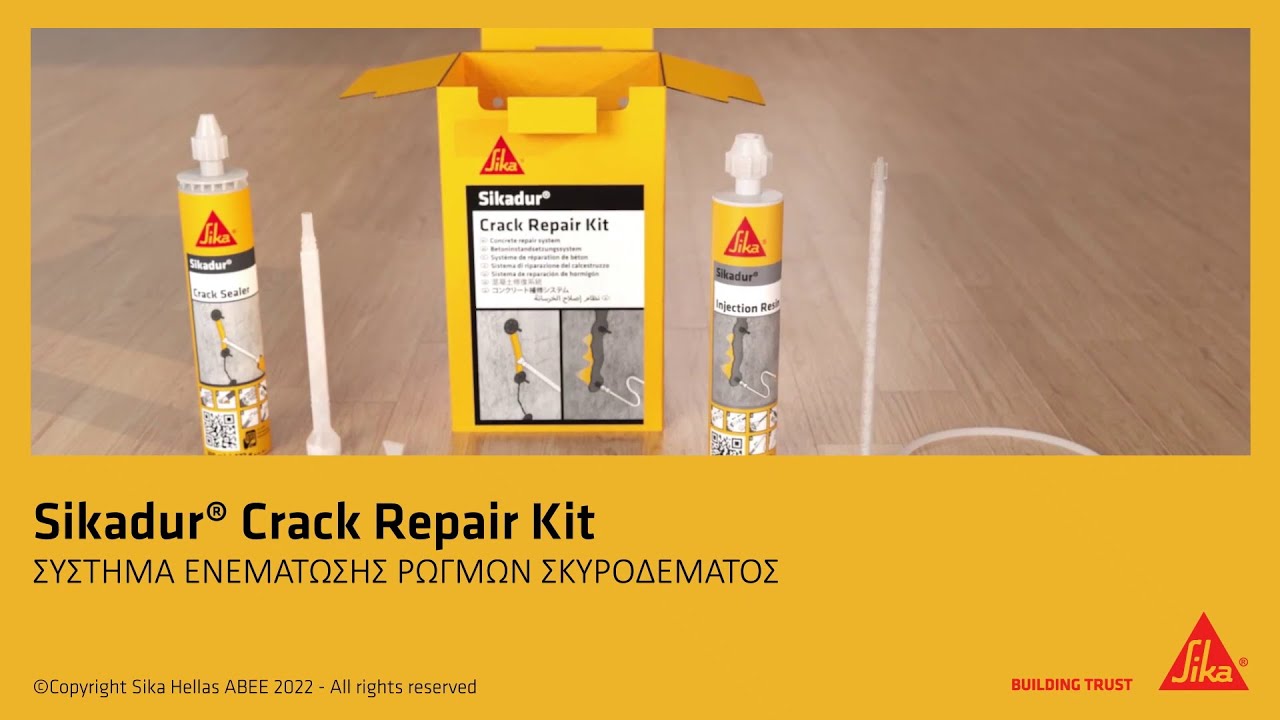 Το Sikadur® Crack Repair Kit αποτελεί ένα πλήρες σύστημα για την επιφανειακή σφράγιση και πλήρωση ρωγμών μικρού ή εξαιρετικά μικρού πλάτους σε σκυρόδεμα και σε τοιχοποιία. Περιλαμβάνει ένα 2-συστατικών, πολυεστερικής βάσης, προϊόν επιφανειακής σφράγισης ρωγμών, μία 2-συστατικών, χαμηλού ιξώδους, εποξειδική ρητίνη ενεμάτωσης και όλα τα απαραίτητα παρελκόμενα που χρειάζονται για την εφαρμογή